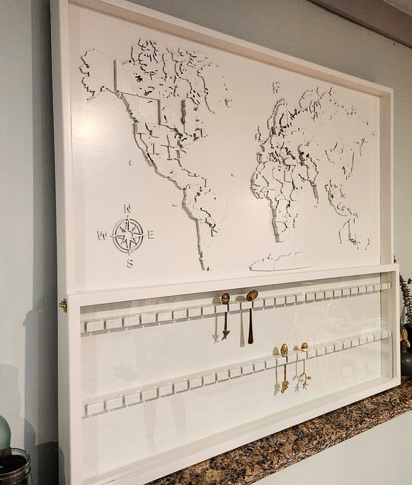 Our customer had a design in mind to help a friend celebrate her collection of travel keepsake spoons. We helped to design something special to help her remember her world travels. We chose a map with relief and custom-designed the sizing and spoon rests. We can design all kinds of custom displays and gifts that last forever.